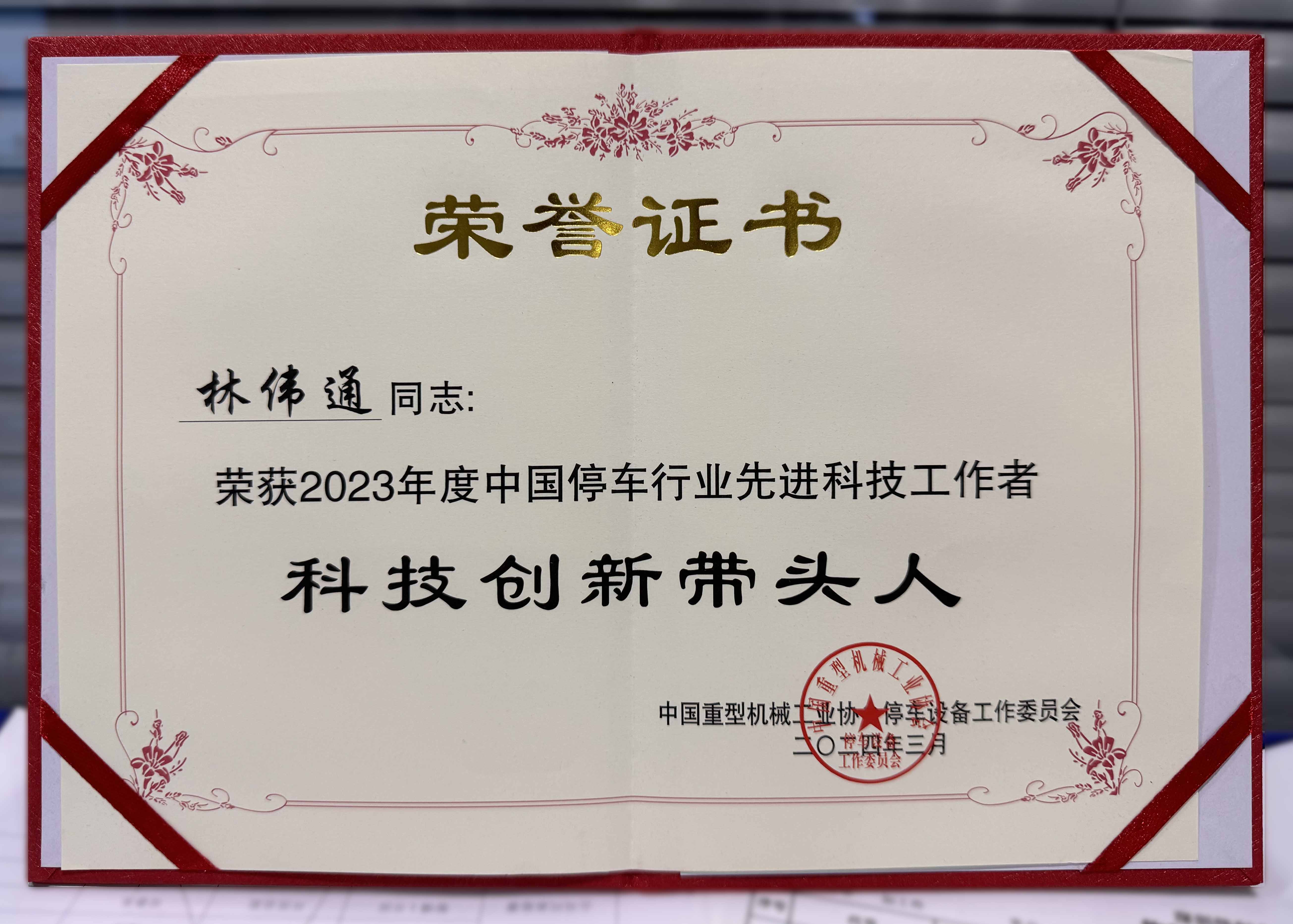深圳偉創(chuàng)總經(jīng)理林偉通、副總經(jīng)理郭勇金分別獲得住房和城鄉(xiāng)建設(shè)部科技計(jì)劃項(xiàng)目科技創(chuàng)新帶頭人稱號(hào)及2023年度中國(guó)停車行業(yè)先進(jìn)科技工作者榮譽(yù)稱號(hào)。此外,在國(guó)家市場(chǎng)監(jiān)督管理總局特種設(shè)備安全監(jiān)察局研究的《開(kāi)展機(jī)械式停車設(shè)備行業(yè)發(fā)展?fàn)顩r調(diào)研和監(jiān)管對(duì)策優(yōu)化》項(xiàng)目中兩人均榮獲突出貢獻(xiàn)獎(jiǎng)。